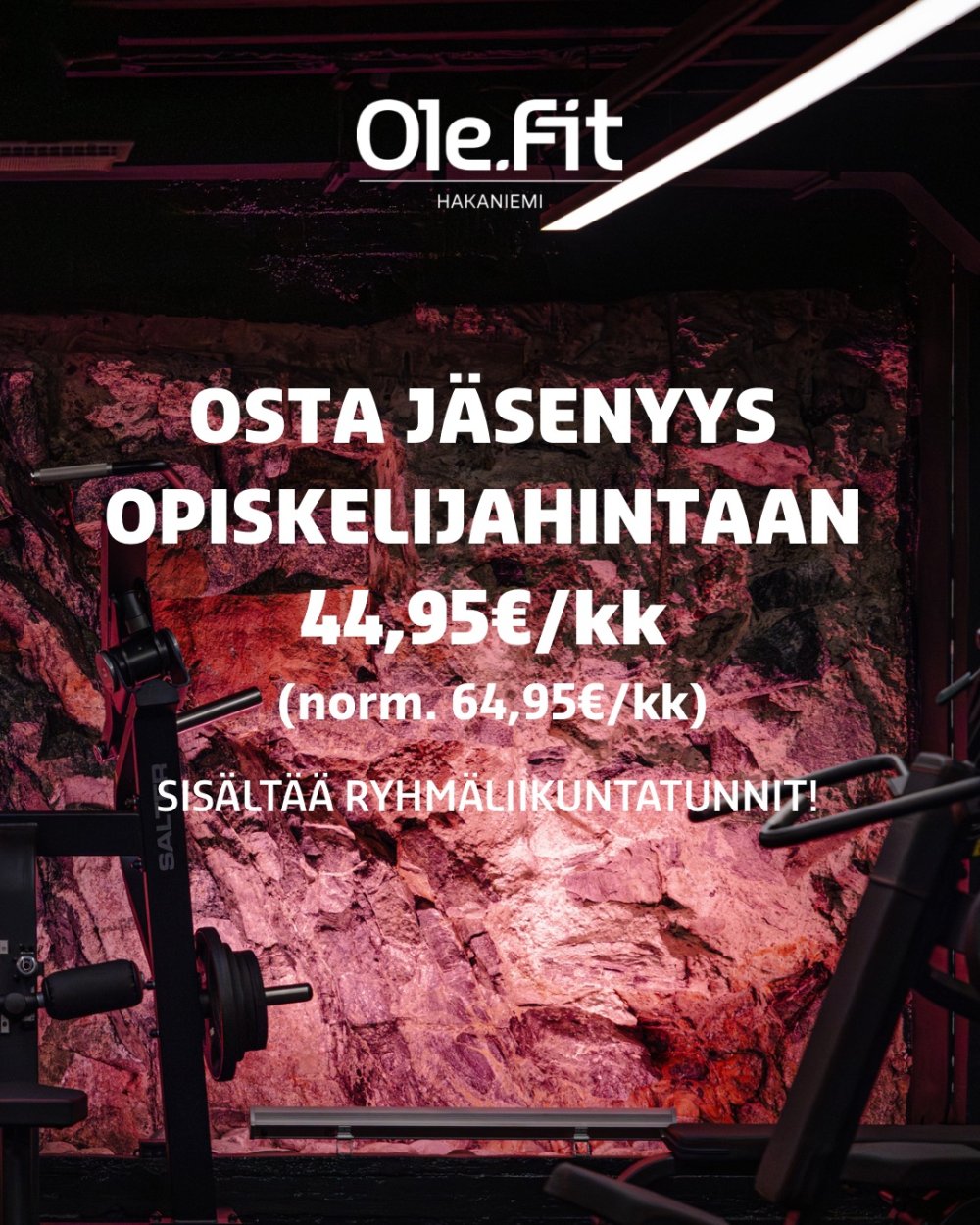 Ole.Fit Hakaniemessä saat käyttöösi kattavat palvelut, jotka sopivat niin aloittelijoille kuin kokeneillekin treenaajille. Meillä ei ole liittymismaksuja, vuosittaisia palvelumaksuja tai sitoutumispakkoa – maksat vain siitä, mitä valitset.