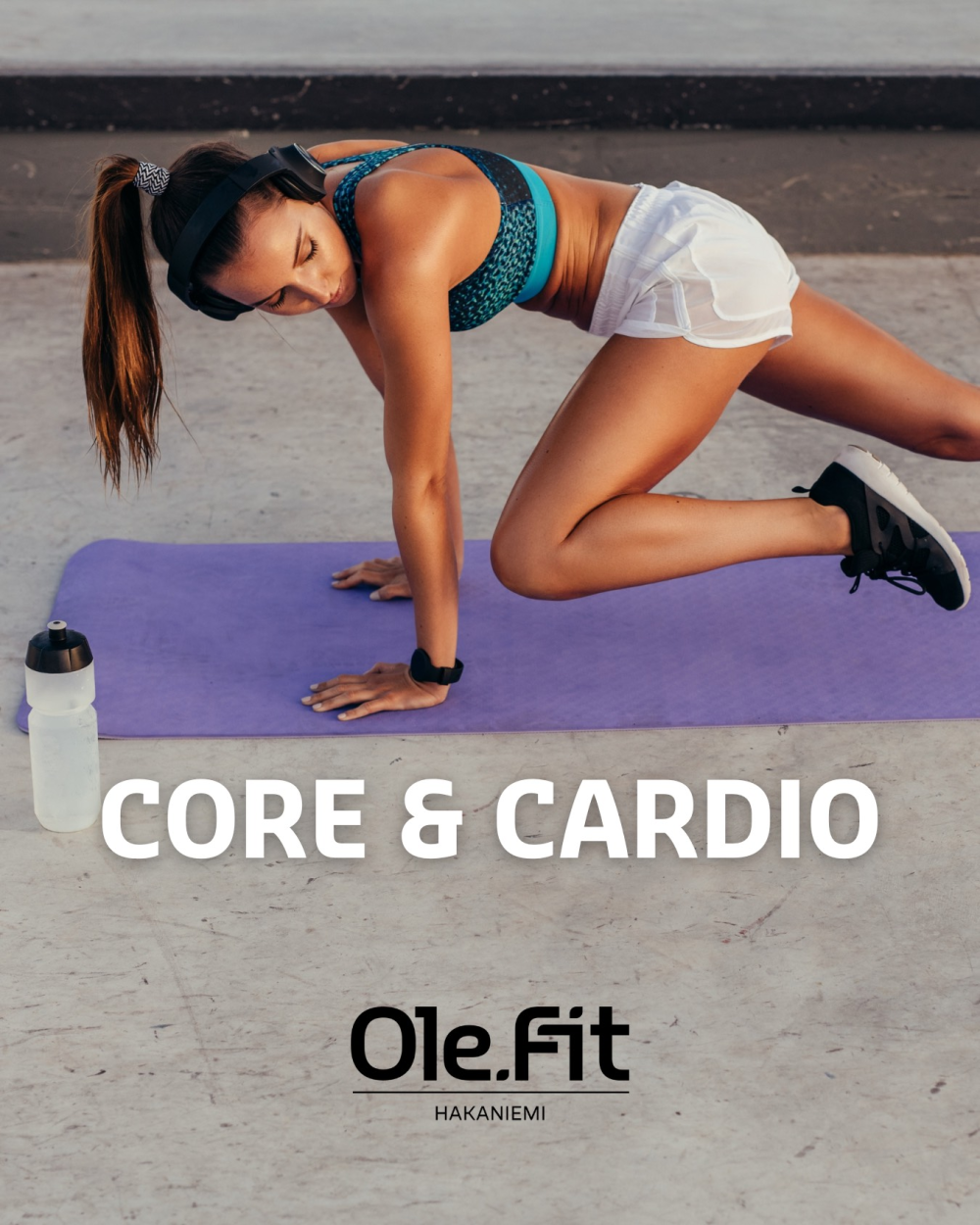 Core osuuksissa vahvistat koko kehon tärkeintä voimakeskusta corea. Cardio-osuuksissa sykkeet nousevat ja hiki virtaa.